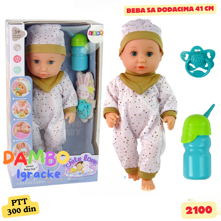 Beba sa dodacima 40 cmPredivna beba u pidžamiSa flašicom i cuclomMože da pije vodu i piški