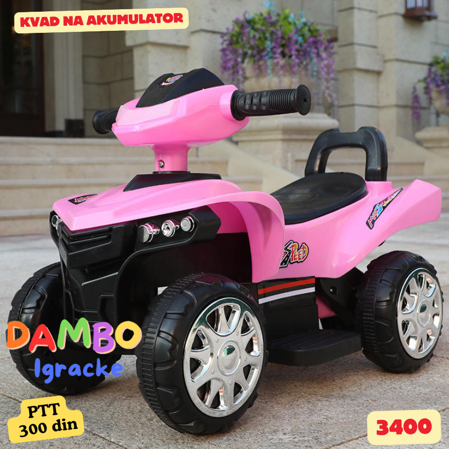 Kvad na akumulator Namenjen deci uzrasta do 3 godine Ima svetlo i držač za noge