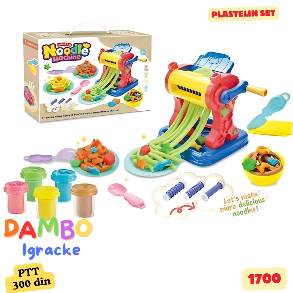 Set sastoji od sprave za obradu testa, testa u različitim bojama i raznih dodataka