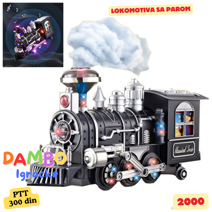 Ima efekat pare (kada se sipa voda u posudici lokomotive, pravi paru i stvara pravi efekat lokomotive parnjače)